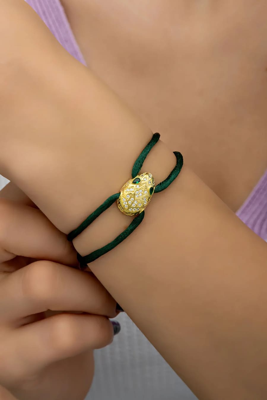 - 925 Ayar Gümüş Zirkon Taşlı Yılan İp Bileklik