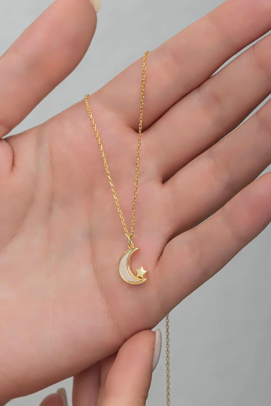 • 925 Ayar Gümüş Sedef Taşlı Ay Yıldız Kolye